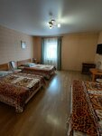 Всем мира и добра друзья🙏🤗 Рекомендую это место! Возможно кому-то покажется не лакшери, но в целом очень душевное место! Мы приехали втроём(взрослые). Увы не было свободных номеров с двуспальной кроватью. Мы взяли номер на троих с двумя раздельными кроватями(я и мои друзья супруги). Номер чистый, мебель, тв, вай фай, удобства в номере, кондиционер включали на обогрев. Батареи позже затопили(своя котельная). На этаже есть отдельная кврилка, с диванчиками, холодильник, питьевая вода с помпой, чайники. У них есть свой банкетный зал с двориком(гуляла свадьба-никому не мешали, отдыхающие в покое и тишине). Своё кафе с действительно вкусной домашней едой и кранами вкусного разливного пива(а невкусного мы не употребляем, если употребляем). Своя баня, не выходя из отеля, просто спускаешься вниз, конечно не лакшери , но хорошая парная, глубокий не малюсенький бассейн, большой деревянный стол со скамьями, душ, предбанник, туалет, зеркало, в целом интересный интерьер... Банные принадлежности, мочалки, можно купить за символическую цену на ресепшене. Персонал приветливый)) Поболтали) Вернулись бы снова .