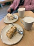 Уютное место с вежливым персоналом. Заказывала матчу с кремом — ожидала классический, плотный крем, но на деле он оказался немного другим, на любителя. Был ещё один момент: мы с подругой взяли напитки с разной температурой — у меня холодный, у неё горячий. Её заказ приготовили первым и просто оставили ждать, пока сделают мой. В итоге, когда нас позвали за заказом, её напиток уже остыл.