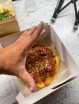 Делали заказ, везли 1,5 часа , учитывая расстояние заведения в 1 км, привезли холодную пиццу, внутри пиццы куски друг на друга( как будто коробки перевернули). Горячая линия просто сбрасывает звонки, после того как узнает причу звонка.