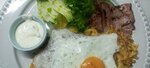 Вчера зашли пообедать  в наше любимое кафе. Как же здесь уютно, хорошо и спокойно. Атмосфера такая, что не хочется уходить. Салатик Цезарь, как всегда огонь🔥, а драники с лососем и беконом сегодня были поистине шедевральными. Спасибо огромное повару, золотые ручки. Всем о вас рассказываем,а многие уже знают. Так держать. И Английский завтрак такая вкуснятина.