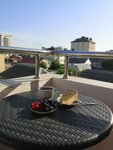 В соотношении цена-качество ставлю твердую 5. Жила в двухместном номере с балконом на третьем этаже (38). В номере достаточно свежий ремонт, все чисто. Новый ламинат на полу. В ванной комнате тоже свежая плитка. Чистое белое белье, полотенца не такие новые как белье, но тоже чистые. Меняли белье раз в 7 дней. Номер хорошего размера, большая кровать и раскладное кресло. Есть дополнительная подушка и одеяло. Чайник, две чайные пары, два стакана. Во внутреннем дворе есть общая кухня. Там тоже есть все необходимое. Мне разрешили взять в номер столовые приборы и тарелки. Я помыла для себя и пользовалась сама. Что важно для меня: - душ стеклянный (не с полиэтиленовый шторкой: я брезгую такие шторки) ; - матрац новый, не продавленный, удобный, нормальной жёсткости; -подушки тоже не сбиты комками, для меня удобные; -не очень маленький холодильник; - хороший кондиционер; -на балконе два мягких стула и плетеный столик, а также сушилка для белья. Гостевой дом расположен просто отлично! В принципе это прям центр всяких гуляний и развлечений. До центрального пляжа (набережной) средним шагом 5-7 минут. В двух минутах центральный рынок и автовокзал. Множество всяких кафе, столовых магазинов. Недалеко есть "Перекрёсток". 👍А самое главное приветливый и внимательный персонал!! Отзывались на любую просьбу, всегда советовали куда сходить, где что найти. Кстати, приехала в 10 утра, и меня заселили без проблем. Единственное, что доставляло мне неудобства - это стирка. Каждая стирка стоит 300 рублей (об этом я читала заранее в условиях проживания), но белье закладыааешь не сам, а отдаёшь администратору. Мне это было неудобно.