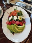 Сочный омлет с копчёным угрем и спелым авокадо.