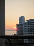 A good hotel, convenient location, near the market, not far from both the center and from Jomtien, you can drive in any direction without problems, shops, massages, makashnitsy, cafes, everything is available, there is an old but clean water park, a sightseeing restaurant in the tower, carousels, bungee jumping, access to the sea, but only to meet the dawn or sunset, I do not recommend swimming, standard breakfasts, rice, potatoes, chicken, eggs, pastries.. there are regular pools with sun loungers, and pools in the water park, generally not bad, the rooms are clean, daily cleaning, beautiful sea views.