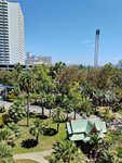 A normal three-piece for recreation. Convenient location. Silence and fun nearby in all directions within walking distance. Not far from the center. I rested in the north and south of Pattaya and this hotel is the best option. The breakfasts are modest, but you can eat and eat them. The rooms are better in the new building and there are fewer people . For unassuming people. In the tower (old building), the sea can be seen from all the rooms. In the new one, not all of them. Due to the fact that the territory of the hotel is large, there are no buildings blocking the view from the windows, as sometimes happens there in five-star hotels. In the photo, the view from the tower to the sea and the new building.