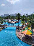 Russian Hotel in Pattaya , Domtien district. It is practically no different from most resort hotels in Egypt, Turkey, Sochi and other popular resorts. First line, 200 meters to the beach. Buffet breakfast (the same as in all resort hotels). Very quiet place, park, palm trees, birds, silence. After the noise of Pattaya, you're just relaxing! Nearby is Russian street, a large market, where there is all the tourist infrastructure. Room prices (2024, February) are about 1200-1600 baht. on average. The peculiarity of the hotel is a lot of rooms - 25 floors with 20 rooms each. The staff is friendly. There are no bathrobes and slippers in the rooms, (3*) They asked for a second blanket - for an additional fee of 50 baht. The guests - it feels like more than half of the Russians. There are few Chinese, Japanese and other Asians. It feels like Sochi or Crimea. 10 minutes to the tuk-tuk highway (10 baht each way). A taxi to/from the center is about 100 baht (via Bolt). Bangkok Airport is 1500 baht away (you can find it for 1200 and 2000). The department has an active excursion program from Biblio Globus, Anex and Fun and Sun. There are countless kiosks nearby with excursions, fruits, and massages. Nearby there is a supermarket "Semerochka", a pharmacy. On the territory there is a water park, an amusement park, a roller coaster, a monorail, a tower with a view and cable cars. In general, you can live)) Of all the hotels that watched, we are glad that we chose it.