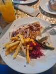 Интерьер красивый, десерты вкусные. Но основные блюда не понравились. Раньше, много лет назад, кухня была куда вкуснее. Может, просто с поваром в этот раз не повезло. Детская комната, как уже писали, совсем уставшая..грязно, запах стоит.. Больше ужинать точно не поедем. В красивом месте хочется вкусно и красиво поесть, но увы, ощущение, что были в столовке. Максимум за наполеоном заехать можно.