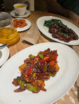 Неплохой интерьер, но по еде есть ваопросы… теплые баклажаны были прямо сильно пересолены, невозможно есть, съела тк была очень голодная, а курица с рисом из азиатского меню, несоленая, очень жирная и прямо пережаренная… второй раз не пошла бы