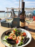 Вкусное вино и расположение около моря. Обслуживание на 4, еда на 4