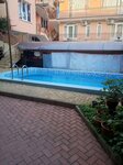 Рекомендуем к проживаю! Единственный минус нет чайника и фена в номере, жили в люксе. Двор большой, бассейн. Зимой с подогревом. До моря идти минут 15 по прямой. Вернемся с удовольствием!