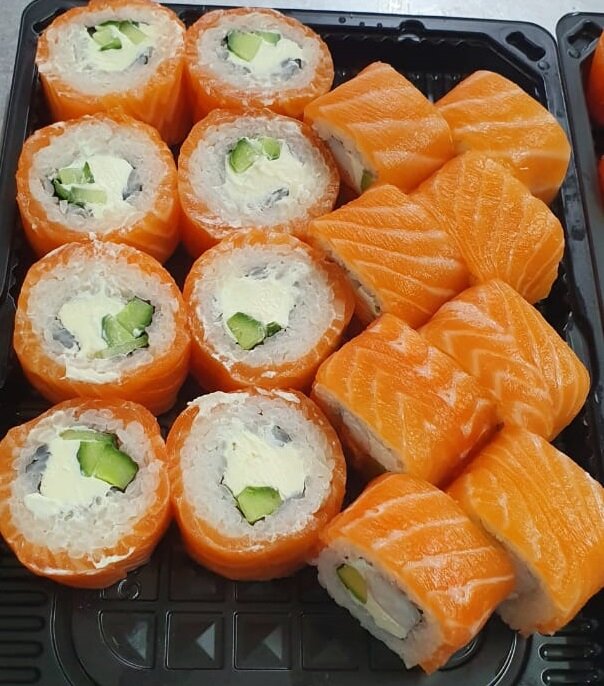 Филадельфия Classic, ролл Лава кани, сэндвич-ролл с курицей, ролл Тигровый, ролл Темпура краб, ролл Цезарь с курицей, ролл Цезарь лайт, ролл Калифорния Кани, ролл Дракон Приборы и специи (соевый соус, имбирь, васаби) в стоимость не включены и оплачи