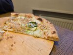 Тонкое тесто, томатный соус, копченая говядина, сливочный соус, фисташка. Выпекается на дровах (25 см)