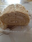 Хорошая пекарня, есть выбор сладкого - рулеты, пирожные, тортики, разные пирожки, с капустой, с картошкой, ватрушки, мини пицца и тд. Все вкусно, сытно. На фото рулет с крем брюле.