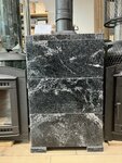 Чугунная печь для бани с закрытой каменкой. Для парильного помещения 8 25 м3. Облицована натуральным камнем Змеевик и имеет панорамную каминную дверцу. Закрытая каменка вмещает до 20 кг камней, длля получения дисперсного пара.