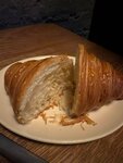 Дорого с посредственным качеством, просто шок. Круассан сухой, слои странные, сливочного масла мало и запах… этот запах советского батона…. Размер круассана маленький, да еще и за такую цену… Фильтр кофе 120мл за 500₽…. Что? ) Малюсенький объем чая тоже стоит дороже, чем в ресторанах Банановый хлеб — ок, но не цена/качество тут тоже не оправданы Чизкейк хороший
