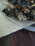 Вот это пирог с грибами, видимо в состав входит обычная земля, еле рот промыл. Это ужас какой-то, антисанитария в вышем своем понимании. Главное так удачно этот кусок земли попал именно в черный пирог, даже не думайте туда заходить