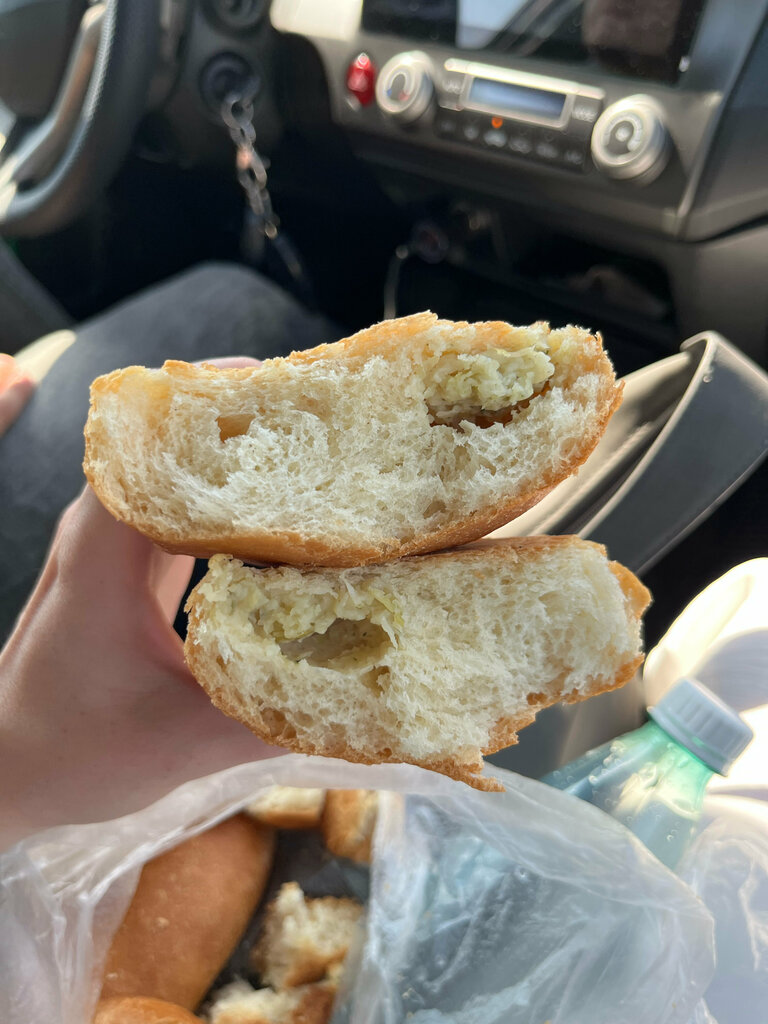 Купили пирожков в дорогу… Это не просто мало начинки, а её отсутствие И брали с картошкой, оказался грамм капусты Жаль потраченные деньги, надеемся, что плохо хотя бы не будет