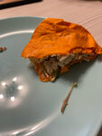 Шаурма очень вкусна, и лепёшки огонь. НО вот выпечка ужас. Взял 2 осетинских, один с мясом, второй с сыром и зеленью. Так вот что бы Вы понималь, там только тесто. Фотки выложу. В сырном пероге только в серединке чуток сыра и ОЧЕНЬ много зелени. А с мясом, начинки чуть больше чем с сыром. Не советовал бы брать там что то кроме шавухи и лепёшек На фото, ребёнок выел мясо из половинки пирога.
