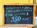 Очень вкусный шашлык в лаваше. Похож на шаурму, только вкуснее и сытнее. Все свежее. Цены доступные. Не смотрите на экстерьер, самое главное вкусно и большие порции!