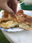 Начинка в осетинских пирогах и хачапури по грузински отсутствует. Осетинский пирог за 250 р. Без начинки! Так держать.