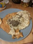 Здешние блины покорили мою подружку. Грибные со сливочным соусом! А вишневые! Песня 👋👋👋