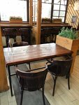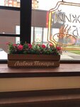 Мне понравилось обслуживание в этой пекарне. Я быстро купила себе кофе американо несильной концентрации по вкусовым ощущениям. Витрины сделаны красиво. При получении заказа с моим ростом примерно 158 сантиметров я ощутила эффект спортивного упражнения, это мне понравилось. Продавщица вежливая и неболтливая, четко выполняющая свою работу. Декор этого кафе очень красивый в виде клумб с цветами и столов с резной надписью бренда этих кондитерских, организаций быстрого питания. При входе для людей, которые пишут отзывы о заведениях, есть информация об адресе этого места в сочетании с его названием на рекламной табличке на уровне глаз. Красивый и чистый картонный стаканчик поднял мне настроение, белая пластиковые кружка с буквами и цифрами меня .