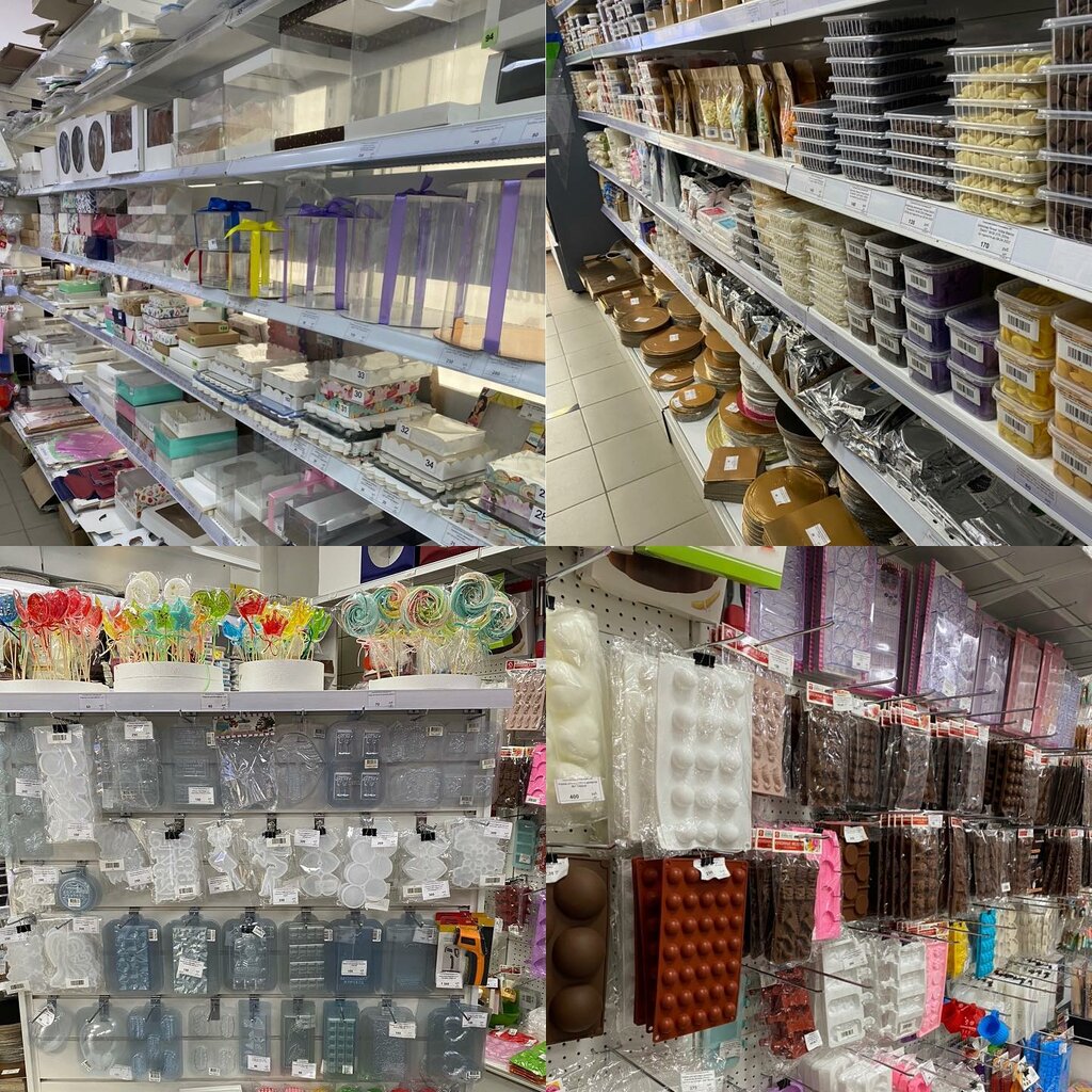 Супер магазин, для тех, кто любит печь для семьи( как я), и так же для прОфессионалов… есть все, что необходимо! Второй год приезжаю перед пасхой именно сюда, покупать декор… девушка- консультант профессионально дает рекомендации, при этом еще и мила и улыбчива! Выбор очевиден, буду постоянным клиентом. Если бы еще и дисконтные карты выпустили, было бы здорово!!!