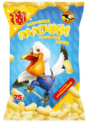 Кукурузные палочки "Пеликан" в сахарной пудре, 65 гр