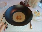 Решили отметить годовщину свадьбы родителей в этом ресторане. И очень пожалели. Очень мелкие порции при очень завышенных ценах. Порция салата- 2 столовых ложки в больших тарелках, хачапури не вкусный, грузди- 2 порезанных грибочка, остальное лук, а стоит 600 рублей. Еда не вкусная, и дорогая. Заказали специально отдельную комнату, с телевизором, чтобы юбилярам клип загрузить, фильм про них сделали, флешку вставили и не смогли воспроизвести, так как формат файла не поддерживается. Никто не предупредил, какой формат файла поддерживает телевизор в вип комнате. Пришлось с телефона смотреть. Сколько до этого в Шато были, даже, гораздо вкуснее, ценник не такой огромный и порции нормальные. Здесь, по тарелке две стол ложки размазано... Перед банкетом привезли торт, попросили поставить его в холодильник, пока оформляли зал, прошло мин 20, вышли, а торт просто на стуле стоит. Там, где люди вечером сядут. Попросили ещё раз унести, поставить в холодильник. Всем как будто все равно.