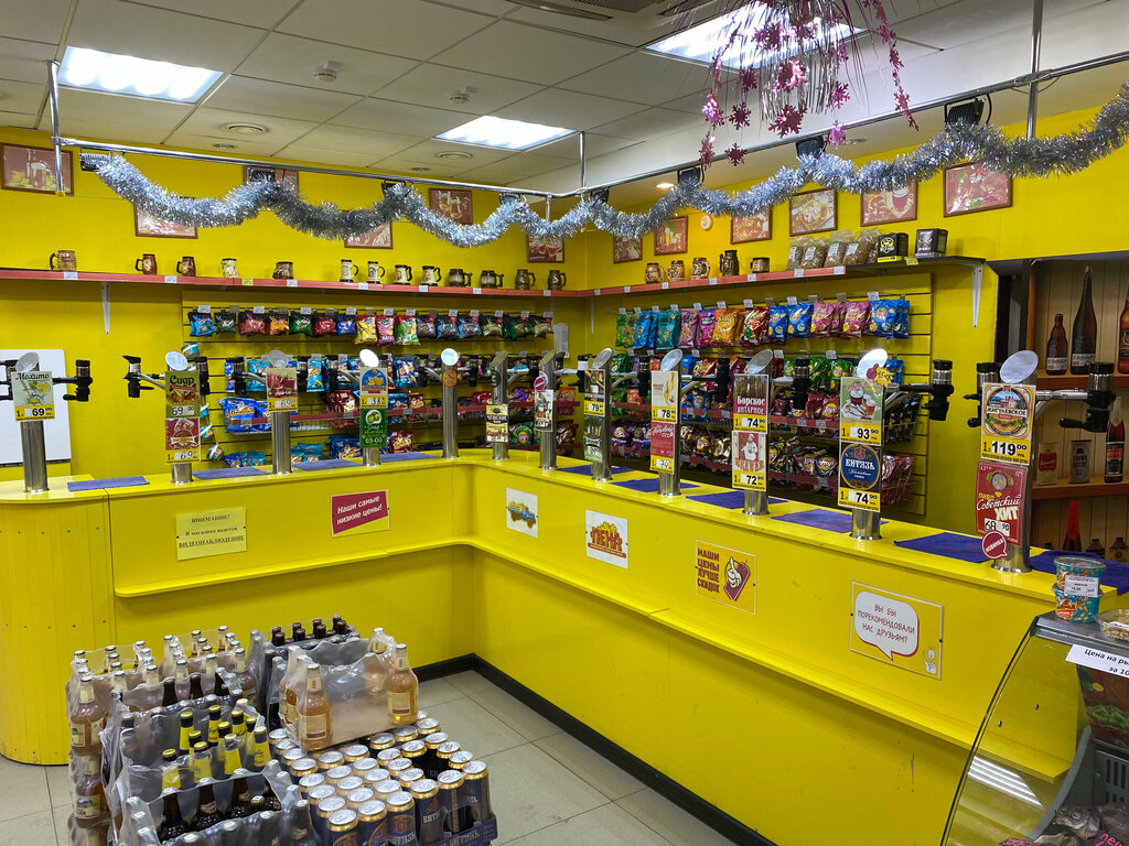 Отличная пивнушка! Одна из моих любимых. В ассортименте много разных сортов пива, коктейлей. К плюсам отнесу большой выбор снеков, сухарей, орешек, рыба всегда имеется тут) кассирши всегда вежливые и отзывчивые. Рекомендую данную пивнушку для покупок пенного!