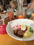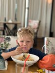 Были большой компанией, официанты проводили за столик. Блюда выносили по готовности, достаточно быстро. Не смотря на то что гостей помимо нас было много. Дети ели пасту, картошку фри и пили коктели, видимо было очень вкусно, так как тарелки были пусты,а для мам это очень важно. На территории есть площадка и пока мы болтали детишки уже во всю играли там☺️