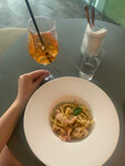 Красивый интерьер, заходила около двух часов дня, народу было много и несли очень долго. Около 30 минут ждала пасту. Итого потратила час на обед, на что честно говоря не рассчитывала. Заказывала карбонару и мне не понравилось. Паста была не Аль Денте, а конкретно не готовая, выбор букатини под карбонару тоже странный. Один вкус недоваренных макарон и мало соуса из желтков и пармезана. Стоило недорого, 390. Но тем не менее как-то не очень. Шприц сделали хорошо.