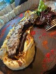 Отличное место. Небольшой, но очень уютный ресторан. Вкусная кухня, вежливый персонал, и очень интересная подача. Так некоторые блюда, подаются на черном плоском камне. Или например гриль мясо с овощами в маленьком казане на подставке под которым горит огонь и блюдо до последнего горячее. Есть большая стоянка, можно заказать еду домой, есть танц пол. Периодически устраиваются тематические вечеринки, поэтому в выходные столик лучше бронировать. Короче очень советую.