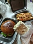 Классно, быстро и вкусно. Брали хачапури жульен и донер "свинтус"В хачапури даже бортик вкусный с сыром. А в донере реально нормальное количество мяса. Есть где посидеть. И даже кофе не разочаровал. Отличное место. Еще бы туалет и было бы идеально.