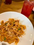 Побывали в этом классном ресторане 6 сентября 2025 года. В субботу вечером местечко нашлось, хоть мы и не успели забронировать. Обслуживание отличное. Есть детская площадка на улице у входа и внутри с аниматором. Заказ принесли очень быстро при условии полной посадки. Мне моя паста с новядиной в перичном соусе ооочень понравилась! Фирменная пицца тоже была вкусная, а вот стейк у мужа попался не очень. Был сильный привкус печени. Нам попалась очень внимательная официантка. Нам понравилось предложенное острое масло к пицце. Узнала для нас рецепт и ещё принесла два маленьких контейнера с этим маслом в подарок))в общем впечатление очень хорошее!
