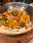 Очень вкусно, крем суп сливочный беконом и мидиями, ум отъешь. Салаты отличные. С тэйк перчини вкусный, но подача неудобная, в сковороде глубоко подают, неудобно кушать, такие вещи на плоских тарелках должны подаваться