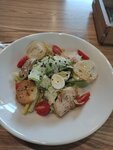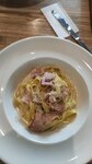 Паста карбонара вкусная, салат Цезарь - что-то в нём было немного не то, но в целом нормально. Кофе капучино понравился. Обслуживание вежливое, время ожидание минимальное, не смотря на почти полную посадку в зале. В целом осталось хорошее впечатление!!!