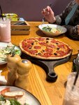 Судя по меню (обложечка потёрта - листают часто), здесь культивируют авторский взгляд на кухню в разрезе сладких вариаций. Например. Язык (говяжий) с вареньем (!) из перца, сладкий. Мы не решились, но утверждают.)) В десертах мусс из томатного сока (пирожное в форме помидорки), сладкий. Вишнёвая лазанья (понятно, что это метафора, но название десерта именно такое). И даже спиральные макароны с беконом (заметно мало) и шариком из куриного филе - оказались сладкие! Пикантно, но к этому надо быть готовым)) мы не столько искали изысков, сколько хотели плотно поесть, поэтому всю прелесть таких особенностей уловить, кажется, не успели... Надо признать, что поели скромно, но плотно! Ужин в этот день пришлось пропустить... Изящно пожарили хлеб - булочные тосты без масла, очаровало то, что поджарилось, как любим - с корочкой! Настроение подняла сервировка одного из блюд на сковородке в стиле "не хватило тарелок" - есть фото! Конечно, тарелок у них полное изобилие, но шутейная атмосфера, вызванная этим, продержалась весь обед. Было весело! Профитроли, скорее, похожи на булочки "Шу". Официант учтива, тактична, мила и красива! Интерьер приятный, чеки тоже. Чайные ложечки подвели - не обладают достаточной увесистостью для класса заведения. Салат из груши с киноа миленький)