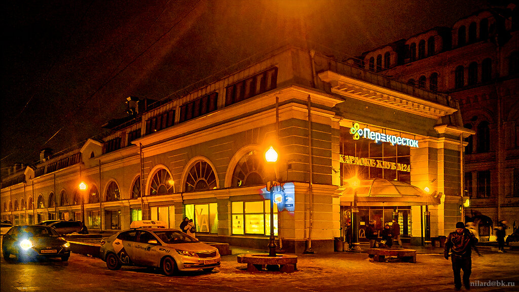 Пожалуй, самый центровой "Перекрёсток" и вообще самый центровой супермаркет в Санкт-Петербурге, особенно с точки зрения взглядов сторонников традиционной городской планировки, в соответствии с которой самый-самый центр города - это здание Думы. От него ведь до входа в магазин какие-то полсотни шагов. Если ещё про особенности, то это, вероятно, и самый длинный из "Перекрёстков", по крайней мере, в Санкт-Петербурге, ведь он занимает весь цоколь Перинных рядов Гостиного двора, точнее, их псевдонисторической реплики. От левой до правой стен весь магазин от силы десятка два метров, а вот вдоль - от входа крайней стены не видно, а от последней, соответственно, выхода. Вход-выход для покупателей, повторим один, так что захотите чего-то с дальних стеллажей, придётся прогуляться или профланировать. В остальном это обычный "Перекрёсток", которому ставить высший балл можно разве что из необъяснимой снисходительнлсти. Ибо в пакет стандартного "Перекрёстка", помимо достаточно широкого ассортимента продуктов и бытовых товаров, обязательно входит и пакет не самых приятных "косяков", вроде лёгкой неразберихи с ценниками, достаточно регулярного несоответствия акционных предложений и осведомленности о них кассовых компьютеров, отсутствия в зале продавцов именно тогда, когда они нужны. Но в целом магазин на этом месте безусловно нужный и полезный, что, конечно не значит, "не требующий улучшений". Как и остальные "Перекрёстки".