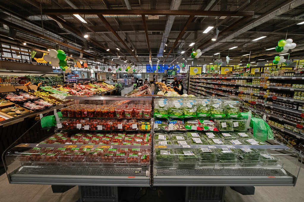 Современно, умно организованно, большой ассортимент, хорошие скидки в будни для пенсионеров особенно при самообслуживании на кассах. Хорошая кухня. Дороговато но приготовлено и подается эстетично и практически всё вкусно.
