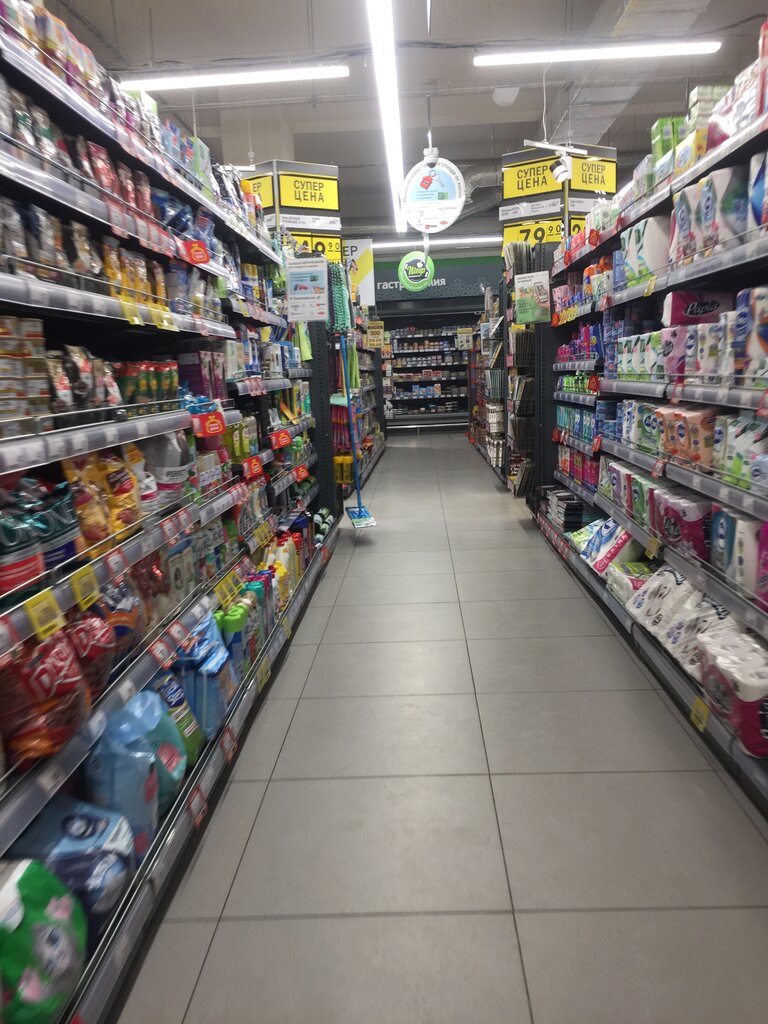 Просторный, светлый магазин. Здесь всегда порядок на полках и аккуратно выложен товар. Большой ассортимент и много акционных товаров, Отличная возможность экономить. Люблю по утрам заходить за свежей выпечкой и кофе, здесь вкусно и доступно. Обожаю миндальный круассан 😊 Особенно люблю ходить сюда, потому что очень отзывчивые сотрудники, всегда подскажут и даже с юмором, что поднимает настроение ❤️