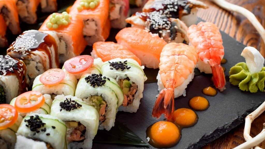Variety of food:sushi and rolls
