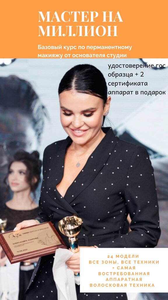 Прошла курс обучения в школе ПМ Александры Азаровой «Империя перманента» и хочу выразить огромную благодарность мастеру тренеру Елене. Мне есть с чем сравнить, это не первое место, где я обучалась, и с уверенностью могу сказать, что подход данной школы правильный и эффективный. За небольшой период времени вы получите максимум информации и практики, очень много моделей. Атмосфера уютная и дружелюбная, основательница школы Александра тоже очень приятная девушка. Долго выбирала место для обучения и рада, что выбор пал именно на эту школу. Советую всем, кто еще сомневается!! Обязательно вернусь, что бы прокачать свои знания!❤️👍🏻