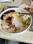 Данное заведение позиционируется как ресторан, но блюда которые делают для посетителей соответствуют уровню советской столовой. Сегодня мы заказали по 2 блюда. Салат с лососем и творожным сыром - такое ощущение что салат утонул в соевом соусе, мои вкусовые рецепторы просто офигели. Бифштекс с брусничным тонкацу - пюре с комочками, странного цвета, и потом такое ощущение что бифштекс по вкусу приготовили вчера а подали нам сегодня. Стейк из телятины с луково-пивным пюре и булгуром - нам озвучили что стейк будет медиум прожарки, а по факту был жесткий, и нифига не медиум прожарки( Оформление блюд не плохо, по вкусу хромают. Заведению ставлю 3 из 5, хозяину обратить внимание на кухню и за порядком в зале и летней веранде.