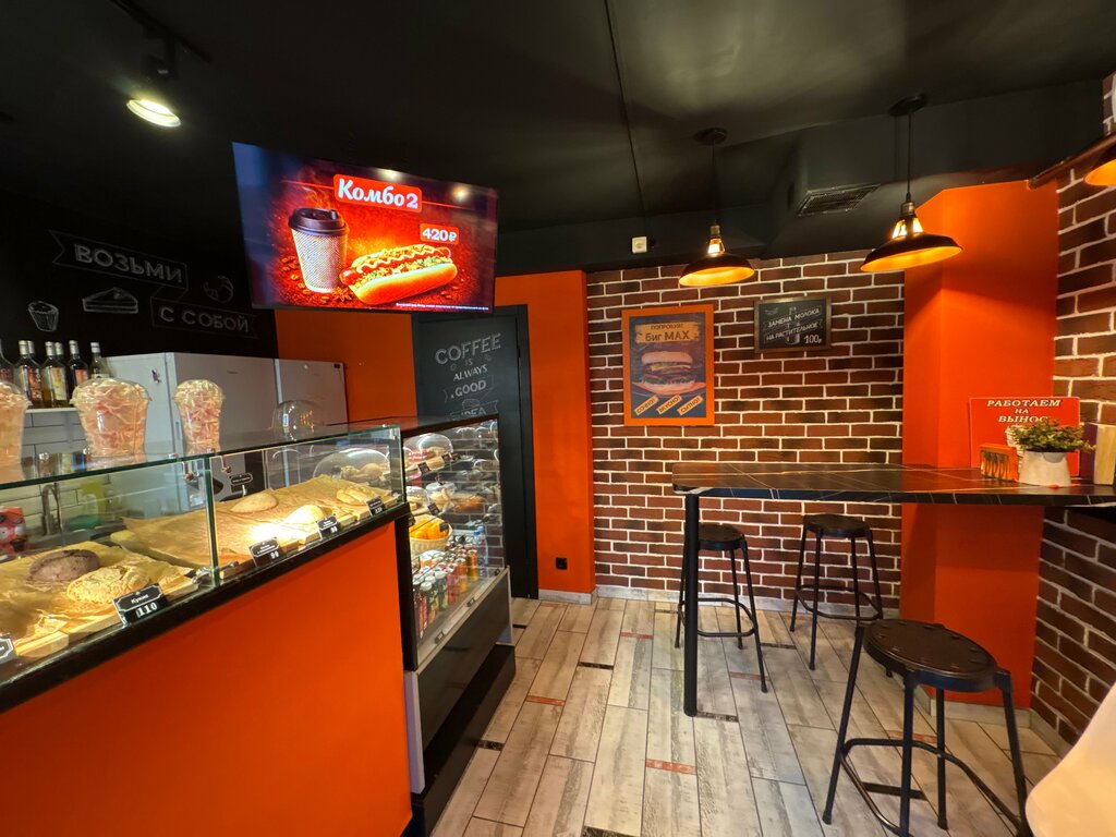 Уютная кофейня в неожиданном месте. Кофе, бургеры, хот-доги - всё готовится здесь, а не разогревается замороженное. Цены соответствуют качеству. Можно на месте, можно с собой.