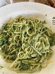 Не вкусно абсолютно ( Ни сырный суп, напоминающий просто картошку из блендера, ни паста со шпинатом, без вкусная, просто макароны с травой перемешанные. Булочки сухие оказались, местами деревянные. Выглядит место мило, но жалею своих денег. И да, столы протирает, и готовит одна и та же женщина. Видимо экономия тут во всем…. На фото паста со шпинатом..