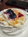 Брала пирожные с собой, отвлеклась и не проконтролировала, что кладут, в итоге дома обнаружила такую "уставшую" Павлову(( по идее, это голубика и гранат, но от ягод не осталось, практически, ничего, крем заветреный, ощущение, что пирожному , как минимум, дня 4((( живу не рядом, так бы отнесла им обратно