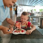 Previously, the hotel was a hotel, what has become now is heaven and earth, because we have never come here before this year after a 6-year break, we also decided not to change the traditions, But we are completely shocked and disappointed. Those who write that there are various breakfasts explain how, because for breakfast for two weeks the same thing: scrambled eggs, sometimes omelets, pancakes of not the best production by the way, oatmeal, rice and instant noodles, cucumbers tomatoes, yogurt, pineapple and watermelon, bread of two types, that's ALL!!!! Sometimes dinner leftovers (once a week somewhere) , a children's club (room more precisely), is constantly closed, water is given 0.5 per day per person, we don't even know what to do with it. Constant renovation, the pool bar is generally something: after 21:00 you have a super disco under your windows and nobody cares that there are rooms and everyone with children. And if you read the early comments, many people write about it. The sound insulation in our room is such that when people in the next room are talking calmly, we hear it just super nice at night, you can hear the balcony closing and the air conditioner turning on ... without comment, all this. The tea is only green and not of the best quality. This is all now, towels are changed every 5 days, only big ones are not given, slippers are not given either, although it was all before. The party school still had microwaves in every room, there was a lobby with a huge library, we brought books here ourselves by agreement with the hotel owner, there was a children's cinema in the evening, free ice cream went to it. Now, in my opinion, this hotel is far from 4 stars and we certainly will not go here anymore. I am not ready until half past one at night with my child to listen to the hammering of speakers from the bar under the windows, to requests to turn down the volume completely ignore, change the room too. But all those who scream at night and sit in this bar at night live in another building wake up at two o'clock and swim out half-drunk for a beer to the bar, so make them a separate bar under their windows. By the way, we poisoned ourselves with soup right there in the hotel, one day we decided not to go anywhere to eat at the hotel and went to bed in the evening. By the way, in the morning after the night festivities, the pool and the surrounding area are not cleaned, people with children come to this bedlam. Of course, the children's slide is closed because it is set up so that when children move out they either hit the steps for descent or simply fall from a height onto granite. The cleaning girls are doing well, they really do it well. In general, no - the hotel has lost its grandeur and coziness.