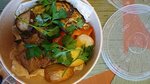 Заказывали с доставкой садж из трех видов мяса, т.к. не могли с мужем выбрать, из какого мяса шашлык хотим. А в садже можно попробовать все сразу, очень удобно) Все мясо в заказе было отлично приготовлено, респект повару) Свинина, баранина и курятина сочная, нежная, с идеальным балансом соли и специй, а к ним шли вкуснейшие овощи гриль с зеленью и специями. Порадовала и упаковка заказа, обычно ресторанные заказы привозят в хлипких коробочках и простеньком полиэтиленовом пакете. А тут еда упакована в добротные красивые коробки с плотными крышками и фирменный бумажный пакет) вот вроде бы мелочи, пакеты-коробочки, но по ним виден уровень ресторана и уважение к клиентам) Мы им довольны, - легко заказали, быстро получили, вкусно поели))