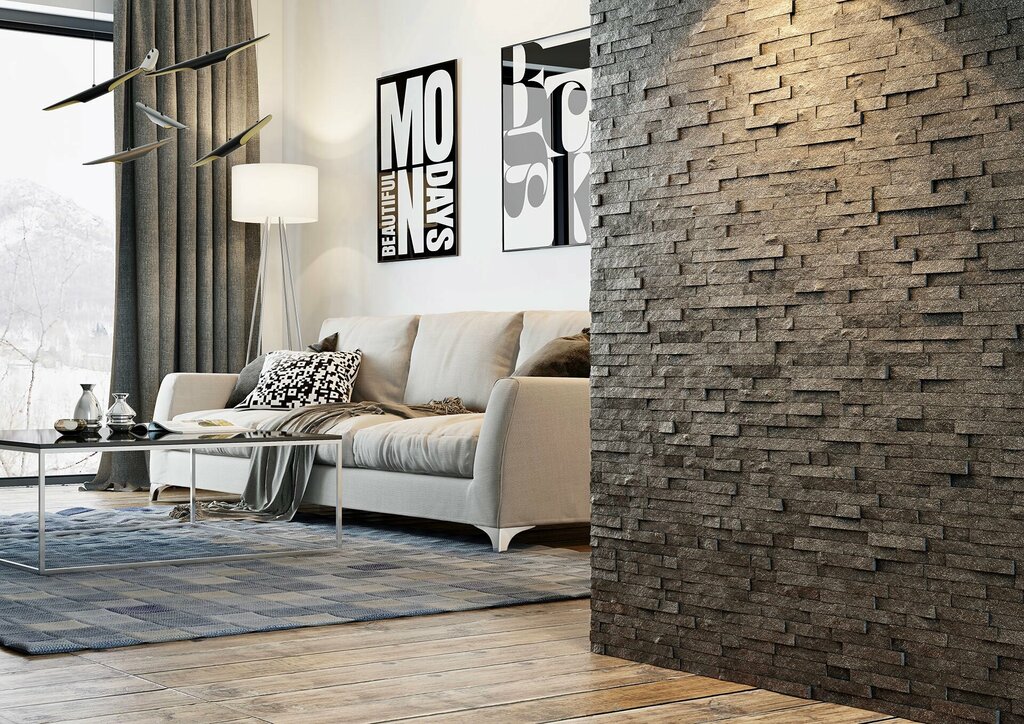 Плитка из натурального камня продается коробками по 20 шт (0,42 м2). Размер плитки 300x70x10-20 мм. За счет разной толщины плитки (от 10 до 20 мм.) создается выразительный 3D эффект, имеет природный скол на поверхности. Сланец черный используется ...