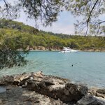 It takes 15-20 minutes to drive from the village of Tekirova to Phaselis, no more, we arrived very quickly. Admission is paid in Turkish lira (~400 trl), so it's worth changing them beforehand if you are going to visit this attraction yourself. To be honest, we didn't really prepare for this tour and didn't read much, there was no guide with us, so we decided to just take a walk, and the places are very pleasant. After walking the entire main street and looking at the ruins, having explored the ancient theater a little, we came to a very beautiful bay with an excellent beach. We didn't see it ourselves, but the locals constantly warned about the presence of snakes. Be careful! There were many cars and motorcycles parked near the ruins of aqueduct. There are mini cafes with ice cream and water on the site. We decided to turn right from the arches first. After walking a little through the forest along the path, we came to a small bay with black sandy sand (volcanic rock). There is a beautiful view of Takhtaly Mountain. Gorgeous mountains, magnificent view of the combination of sea and mountains at the same time. Unfortunately, the place was unclean, there was garbage. If we assume that this is a beach, then it is a very dirty beach. Although the water was clear, there was sand on the bottom instead of the usual pebbles for Kemer, which is pleasing. Some construction work was going on nearby. The water here was much warmer than in the open sea. Even the children were swimming. There was a toilet and a shower nearby. Everything is unkempt, but toilet paper is available. Summary - it's worth visiting Phaselis, but it's better with a guide or having studied the topic in detail on your own.